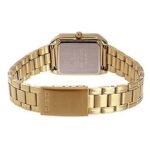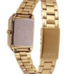 This beautiful gold-tone timepiece features a refined square dial with a clean analog display, offering a sophisticated and feminine look. Its stainless steel bracelet enhances durability while maintaining a luxurious finish.